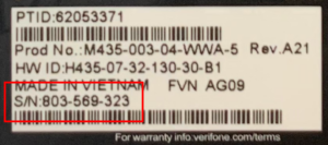 Eksempel på terminalens serienummer: