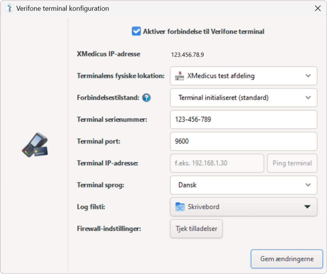 INFO: Verifone har selv en bruger-manual til opsætning, den kan læses hos producenten her.
